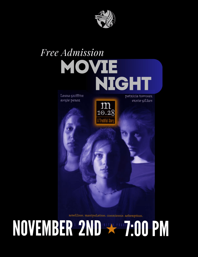 TONIGHT! M10.28, An interesting look at the struggles a teen faces in high school. The film deals with relationship struggles from one’s parents to other classmates, and her spiritual life. Tonight, Nov 2nd at 7:00pm we will have popcorn and snacks hope to see you there.
